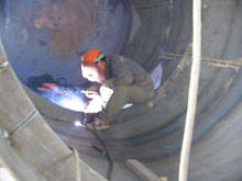 | 除氧頭改造生產(chǎn)現(xiàn)場(chǎng)(采用:蓄熱填料液氣網(wǎng)) | 除氧器制造現(xiàn)場(chǎng)(材質(zhì):不銹鋼) |