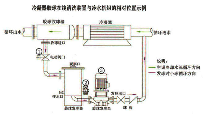 宏慶電力——冷凝器膠球在線清洗裝置,是一種綠色、純物理方式的冷凝器阻垢、除垢、排垢系統(tǒng),該系統(tǒng)通過將一定數(shù)量的特素磨砂小球注入到管式冷凝器的換熱管中,與冷凝器的進(jìn)出水管道形成一個(gè)由發(fā)球、攔球器、收球回路、自清洗設(shè)備、自控閥門組成的閉路系統(tǒng)循環(huán)系統(tǒng),實(shí)現(xiàn)在線全自動清洗工藝,球體不逃逸且攜污能力強(qiáng),運(yùn)行平穩(wěn),無外接能源要求;對化學(xué)性結(jié)垢,泥沙,微生物粘泥的清洗效果顯著。