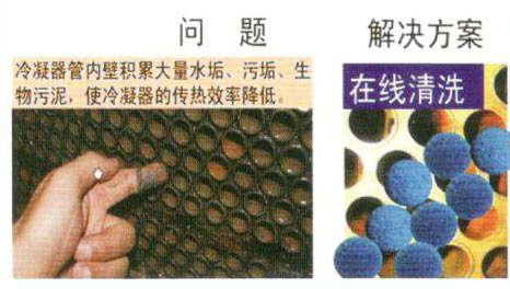 ▲取代定期人工捅刷,保持冷凝器換熱管365天清潔,使其處于換熱狀態(tài)。
