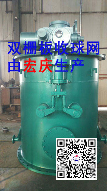 、存儲(chǔ)和觀察膠球循環(huán)情況的裝置:它由外殼、漏斗、切換閥等部件組成,并配有觀察窗、放氣閥、放水閥。我公司生產(chǎn)的收球網(wǎng)是目前較其它膠球清洗裝置的更新?lián)Q代產(chǎn)品,結(jié)構(gòu)形式先進(jìn)合理,分為柵格網(wǎng)板式(SF型雙柵格網(wǎng)板收球網(wǎng),SD型單柵格網(wǎng)板收球網(wǎng))和SL型漏斗式收球網(wǎng)。柵格網(wǎng)板式收球網(wǎng)的柵網(wǎng)板可以轉(zhuǎn)動(dòng),在膠球裝置投運(yùn)時(shí),網(wǎng)板處于收球位置,在不投運(yùn)清洗裝置時(shí),該柵網(wǎng)板可旋轉(zhuǎn)到與水流方向一致的位置;既減少水阻又起到清除柵網(wǎng)板上雜物的作用.網(wǎng)板的轉(zhuǎn)動(dòng)定位由電動(dòng)執(zhí)行機(jī)構(gòu)執(zhí)行(DN300~DN700小型收球網(wǎng)為手動(dòng)控制),柵網(wǎng)板到位與否是保證膠球清洗裝置系統(tǒng)收球率的關(guān)鍵之處。