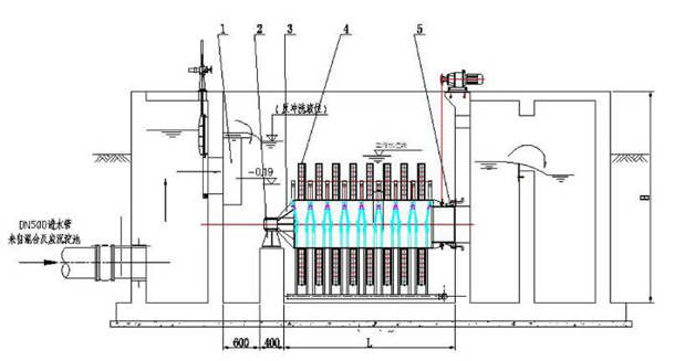 圖為纖維轉(zhuǎn)盤過濾器的安裝布置示意