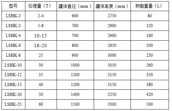 五、樹脂除氧器規(guī)格型號: